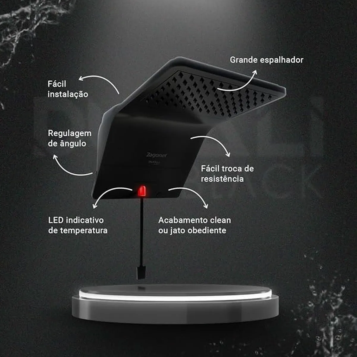 A Ducha Ducali Black recebeu esse nome em referência ao palácio Ducal, uma obra-prima arquitetônica, situado em Veneza, cidade famosa pelos seus canais e cenas culturais. Aliando tecnologia de ponta, com design, pesquisa e desenvolvimento, o resultado é uma ducha que proporciona uma experiência única de banho, com um grande espalhador, o que permite uma excelente vazão de água. Sistema micro processado de ajuste de temperatura progressiva que fornece a temperatura ideal, garantindo o conforto e a praticidade que você merece.