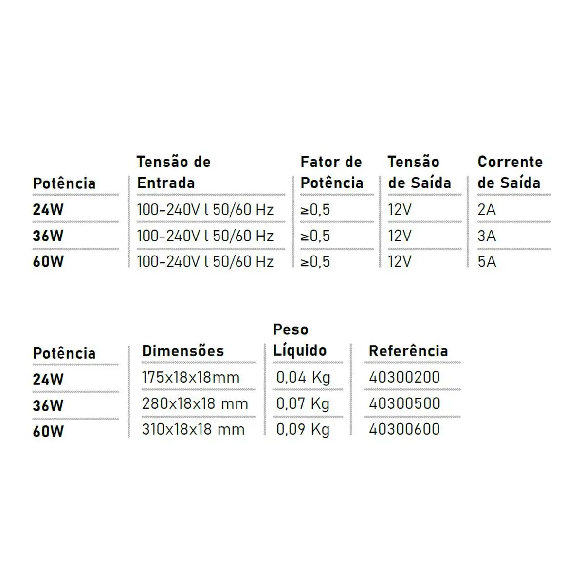 Conta com duas opções de potência 36W e 60W, corpo em alumínio, que atende as variações de tensão entre 127V e 220V e possui 1 ano de garantia.