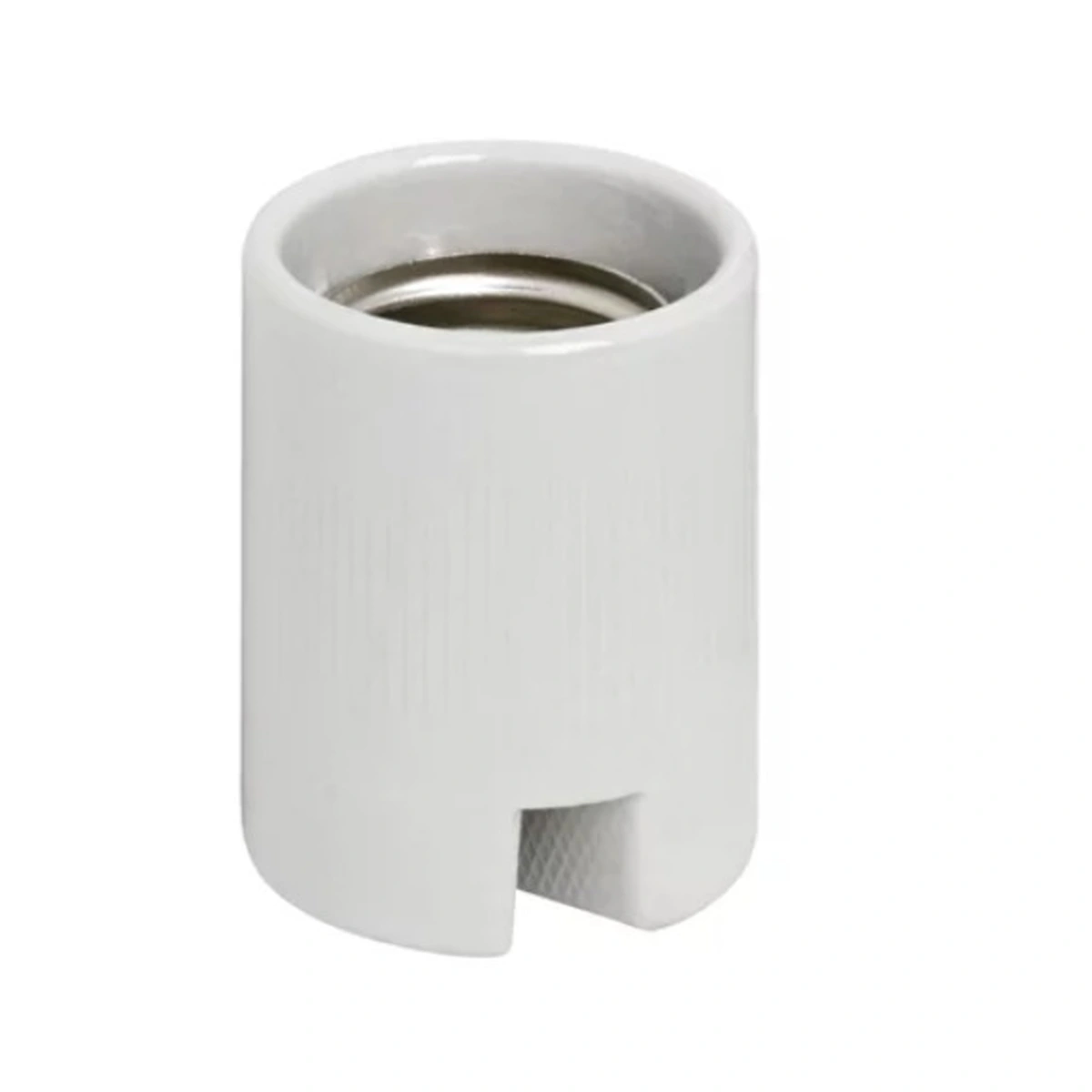 Soquete E40, também conhecido como Base ou Bocal, é produzido em porcelana esmaltada, soquete em cobre niquelado e com bornes embutidos para faciliar instalação e proteger contra choques acidentais;