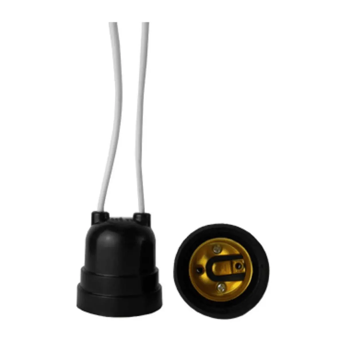 Soquete receptaculo em plástico de engenharia, cabo reforçado na mesma cor do corpo, com contatos em latão para Lâmpadas Base E27, Halogenas, Fluorescentes e Led, muito utilizado em varal de luzes ou varal de lampadas, entre outras aplicações.