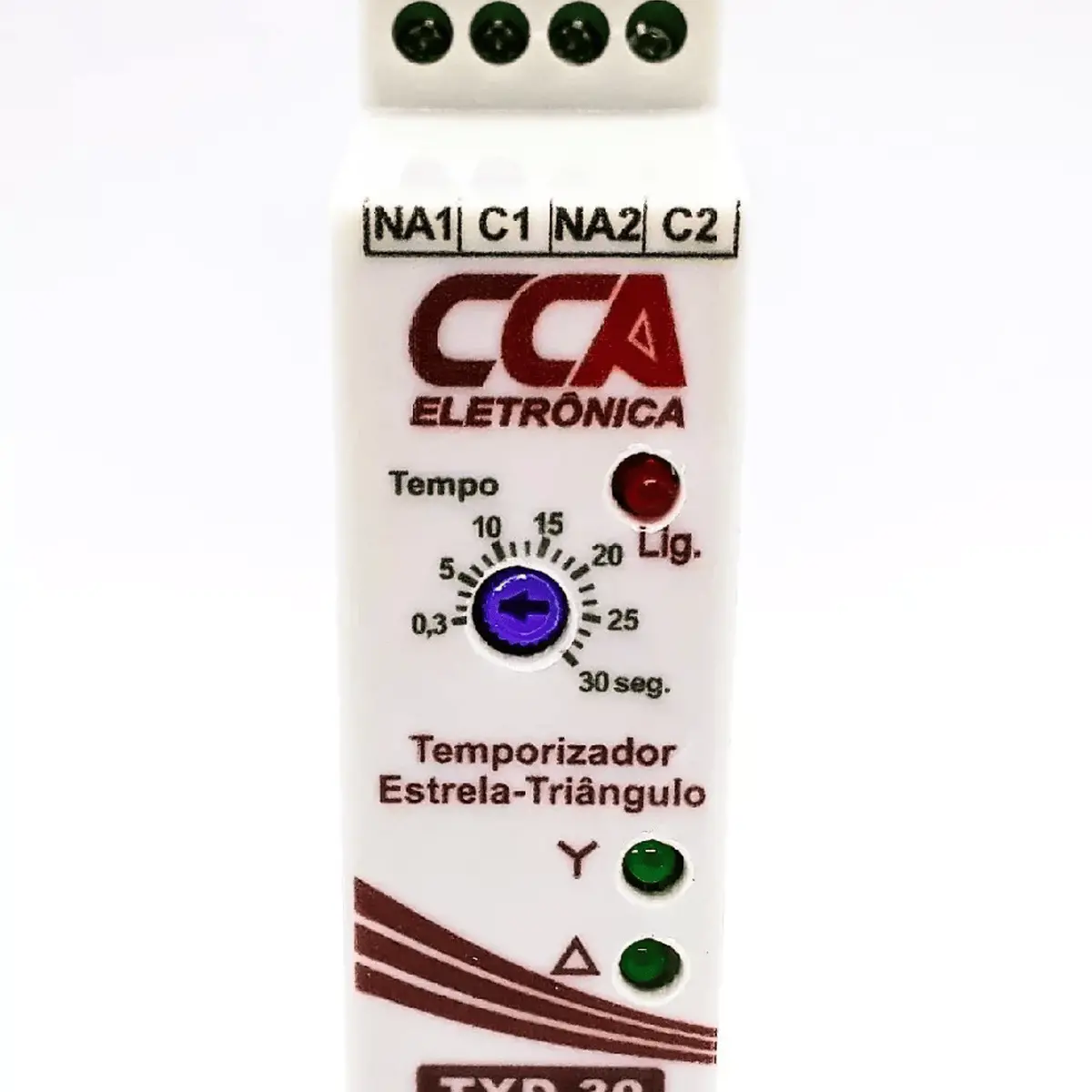 O Temporizador Estrela-Triangulo é um componente de automação para partidas do tipo ‘estrela-triângulo’, destinado a motores elétricos trifásicos. Para automatizar a manobra de partida, se utiliza um temporizador estrela-triângulo, que ao receber tensão em sua bobina aciona o primeiro contato que liga so contatores que partem o motor em modo estrela, e permanece assim pelo tempo ajustado para durar a partida estrela (esse tempo deve ser ajustado conforme a rotação do motor), após esse tempo o temporizador desliga o modo estrela, em seguida aciona o contato que liga os contatores responsáveis pela partida em modo triângulo (estágio final).